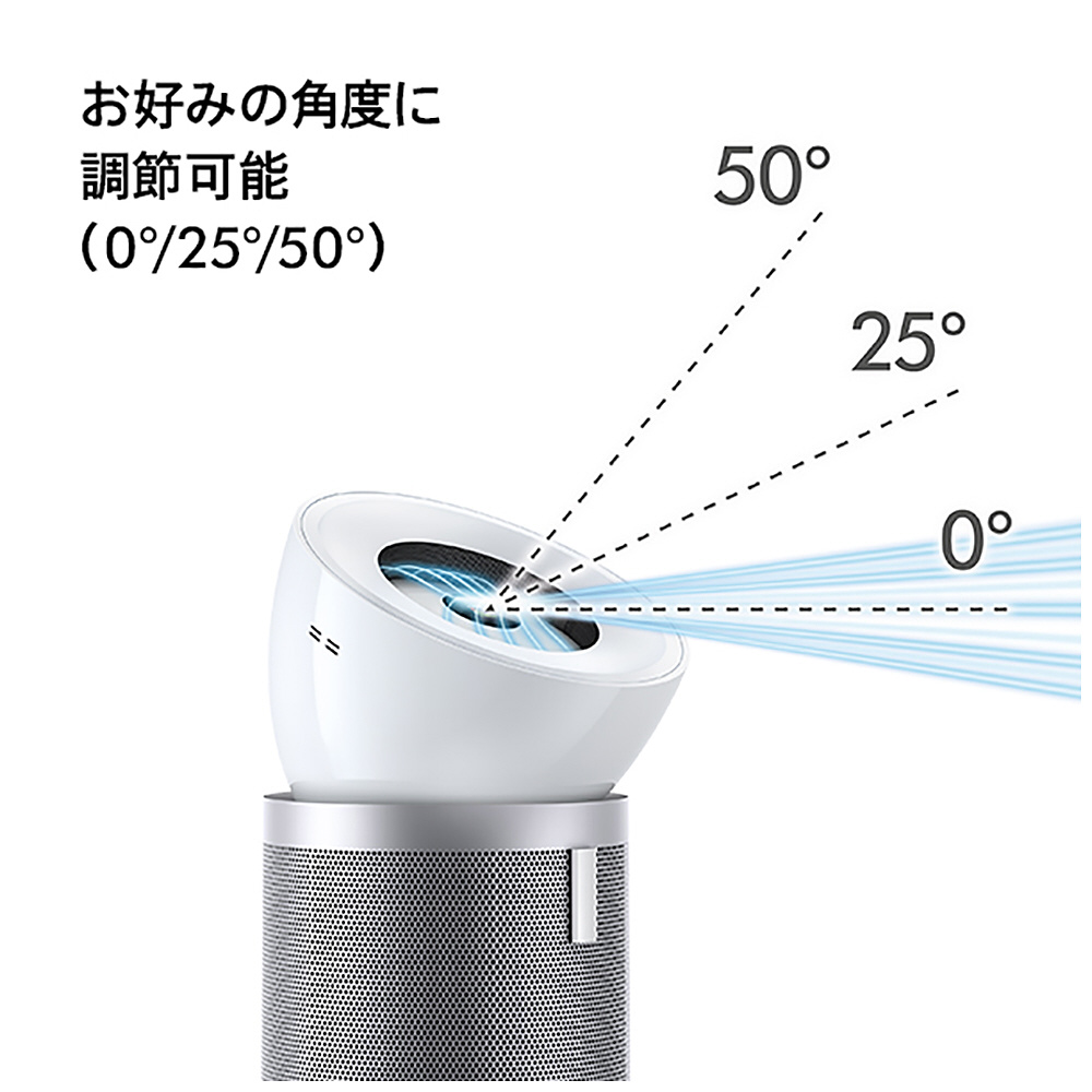 角度を0度、25度、50度に調整したり、そよ風のような動きに設定できます。