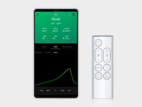 空気中に浮遊する粒子状物質、有害なガスやニオイを自動で検知、分析。LCDディスプレイやMyDysonアプリにリアルタイムでお知らせします。