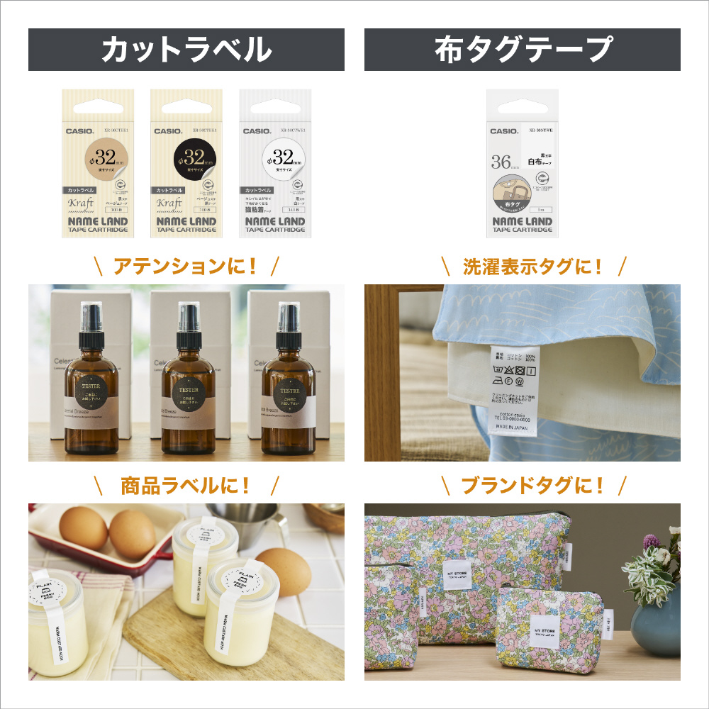 | 付属品 | XR-12KRBE(ネームランドクラフトテープ)、XB-18WE(ラテコテープ)、ラテコテープアダプタ(18mm用)、ACアダプター、USBケーブル(Micro usb) |