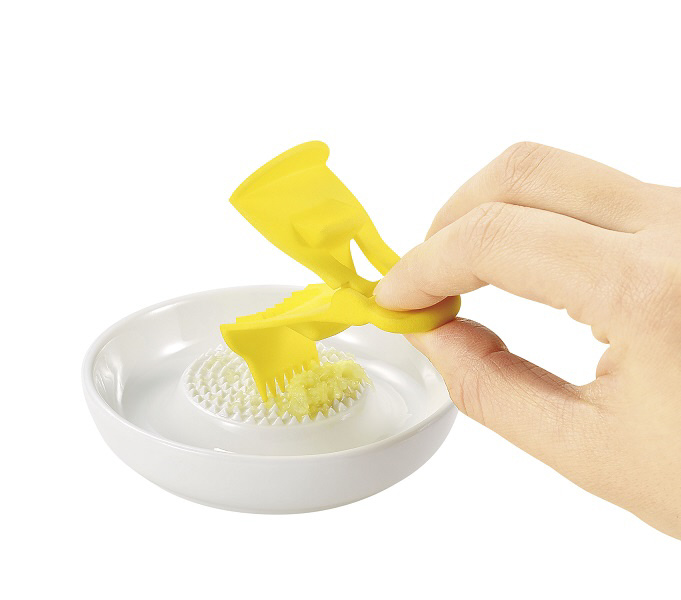 下村工業のフルベジスマイル薬味ホルダーは、しょうがやにんにくなどの薬味をおろす際に指をガードし、最後まで無駄なく調理できるアイテムです。