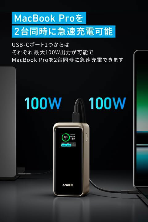 3台まとめて急速充電可能な超高出力モバイルバッテリー