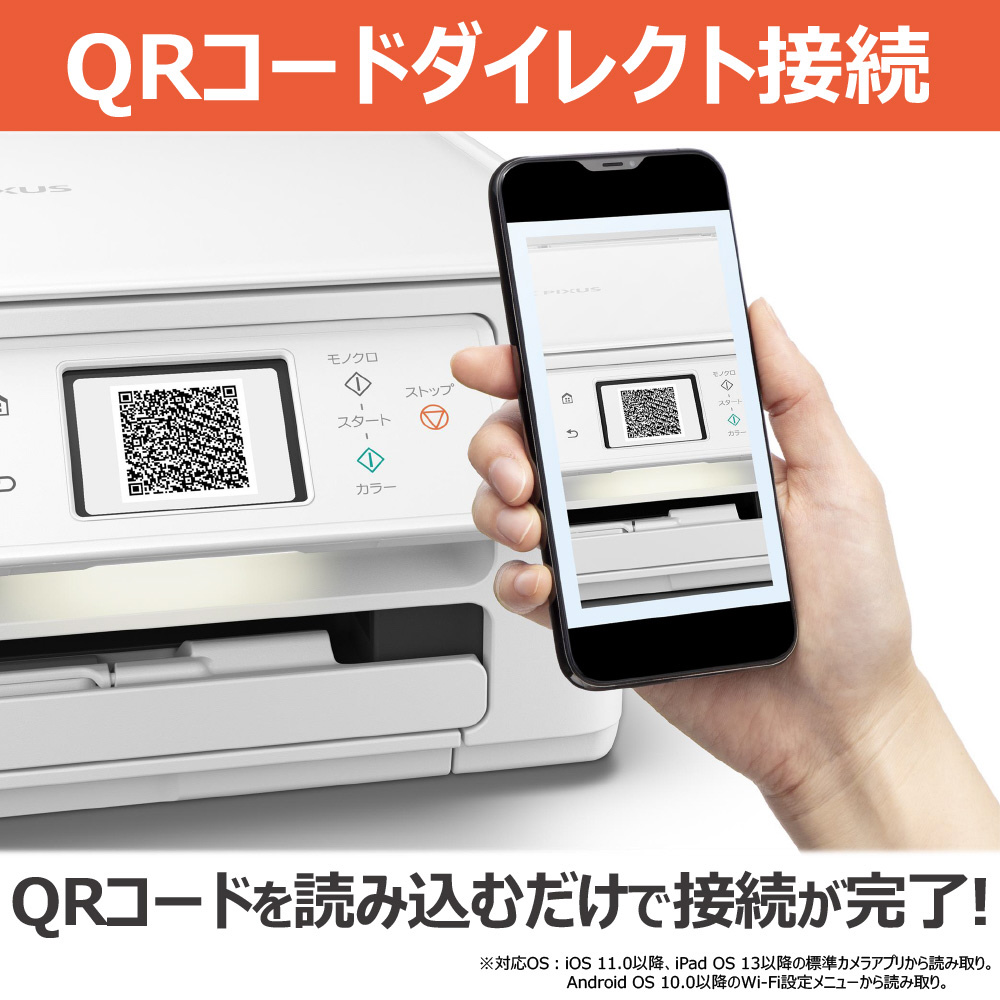プリンターの液晶画面にダイレクト接続用のQRコードを表示。読み込むだけで、SSIDやパスワードを入力することなく接続設定が完了します。