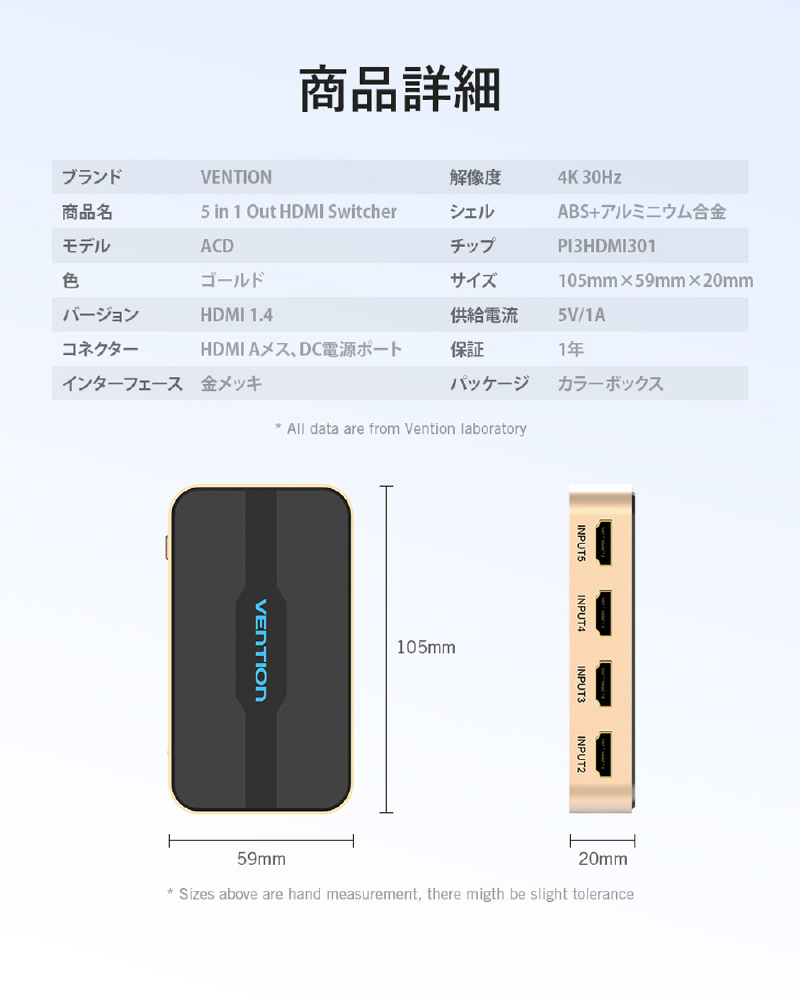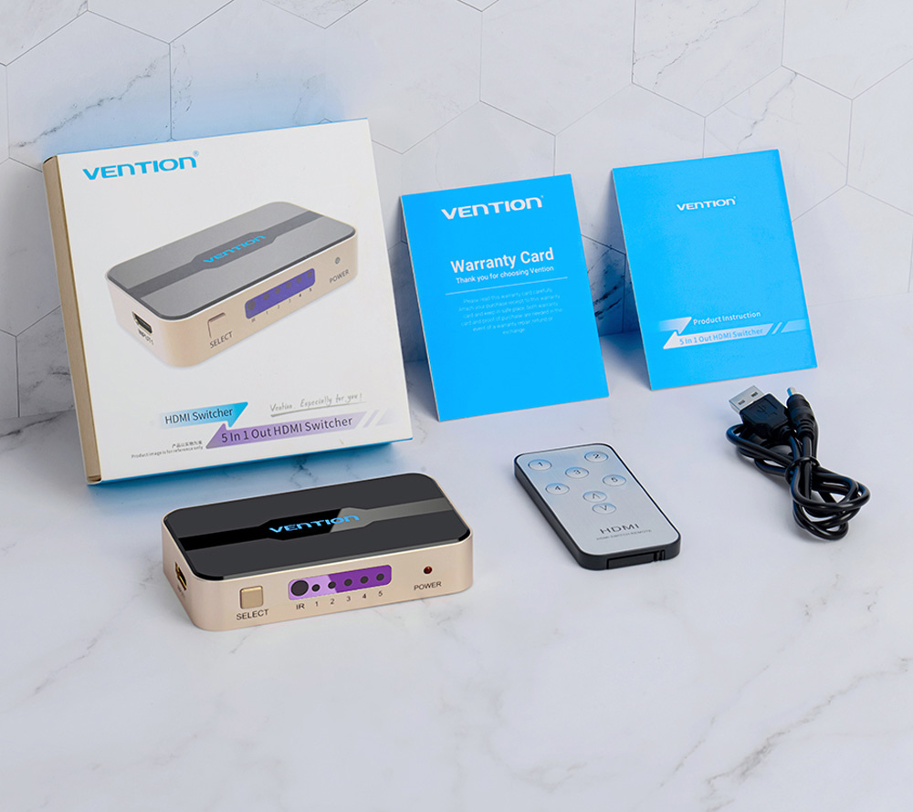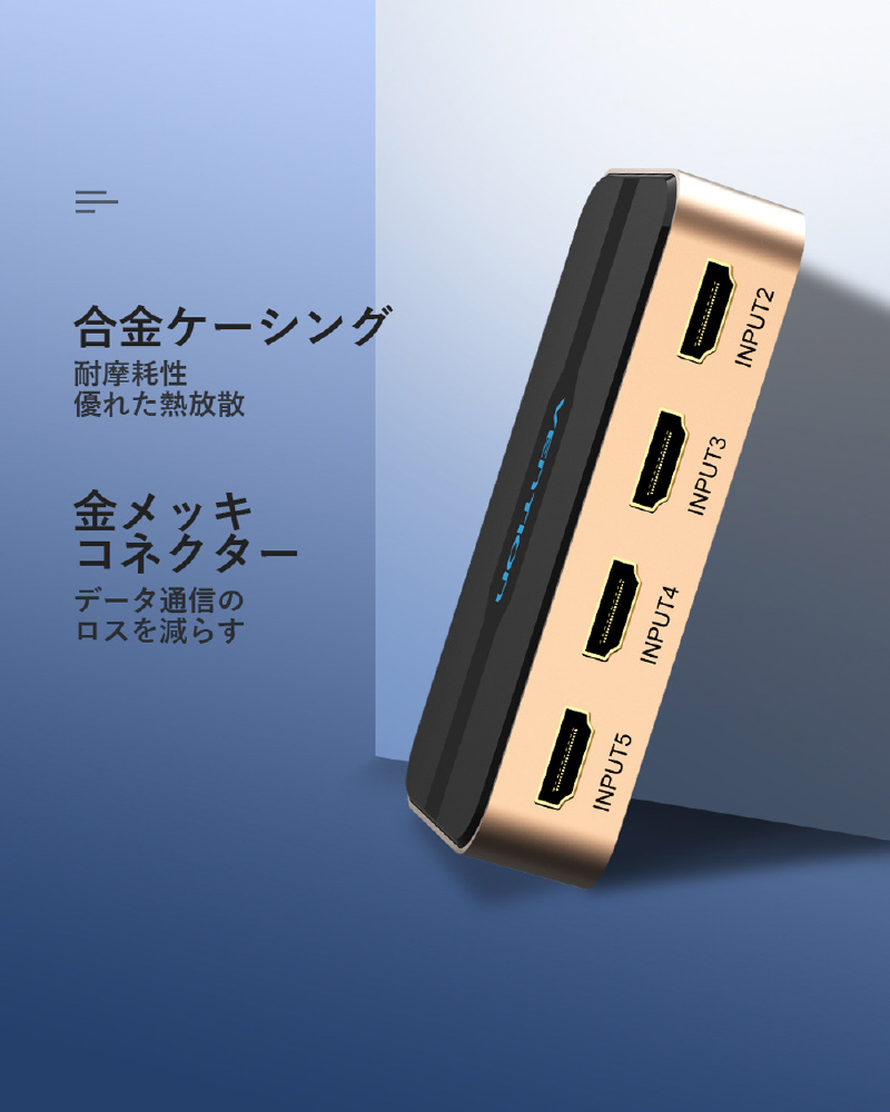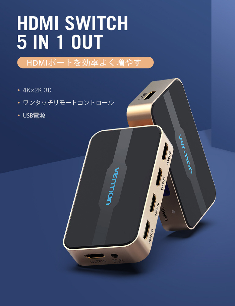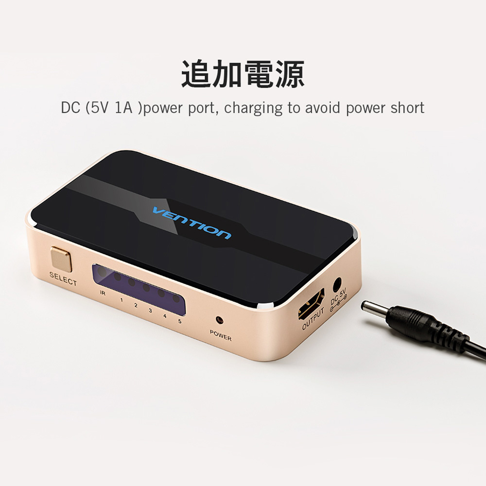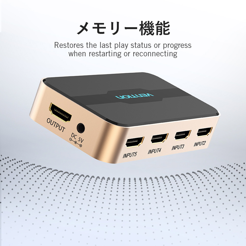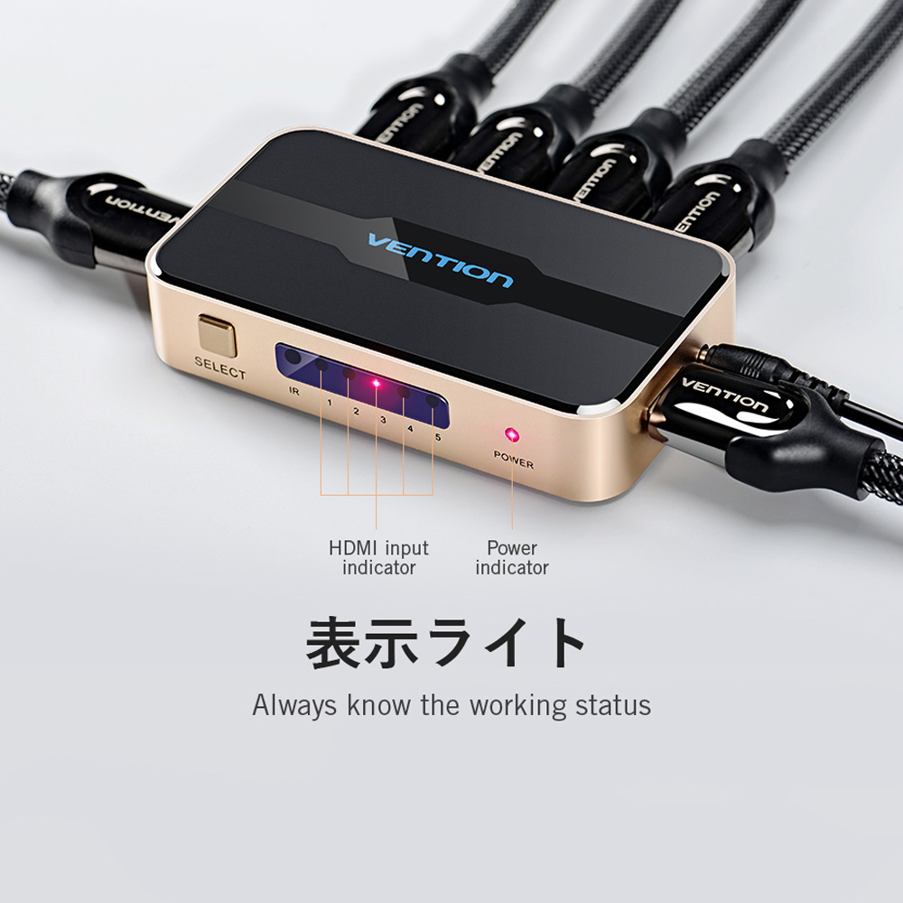 5つのHDMI入力ポートと1つのHDMI出力で様々なHDMIデバイスに対応したスイッチャーです。
