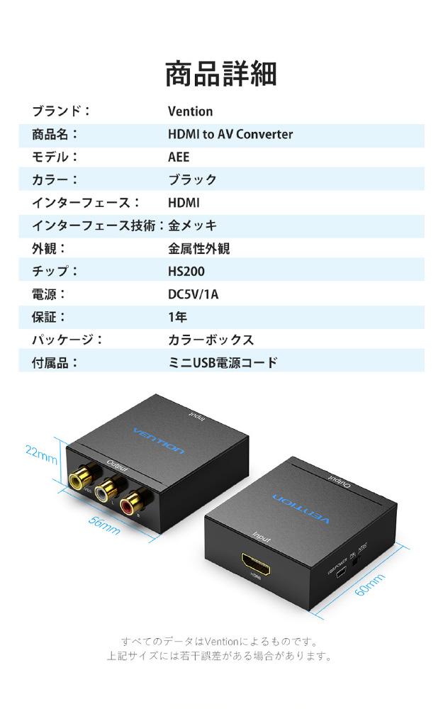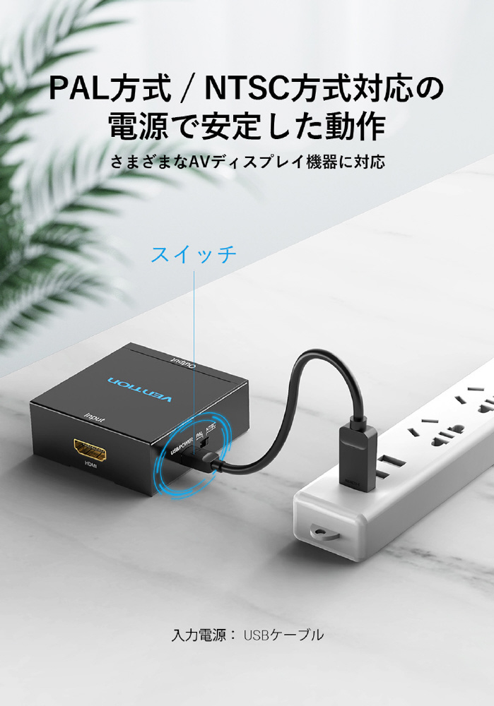 変換コンバーター [HDMI 入力−出力 RCA] USB-A電源 ブラック AE-2526