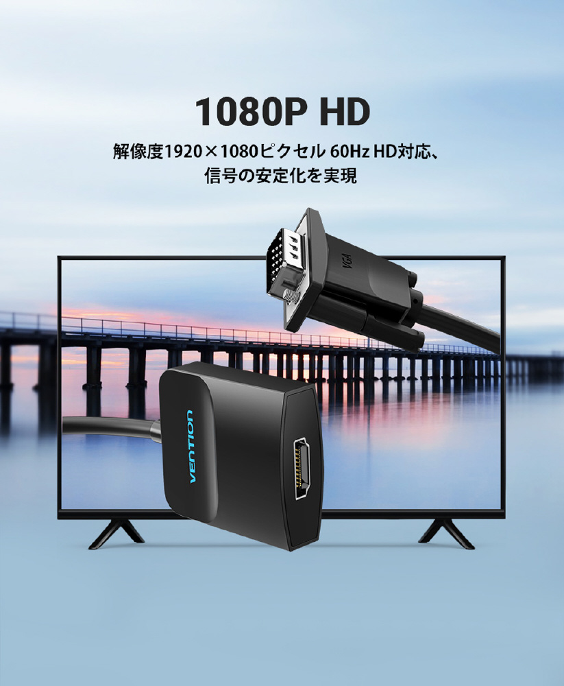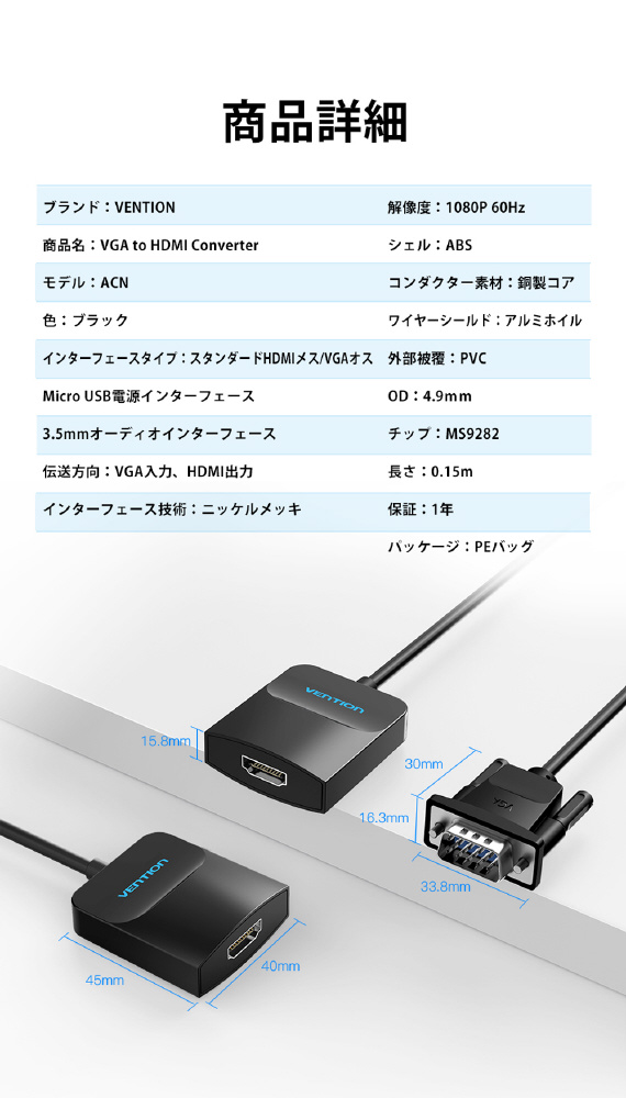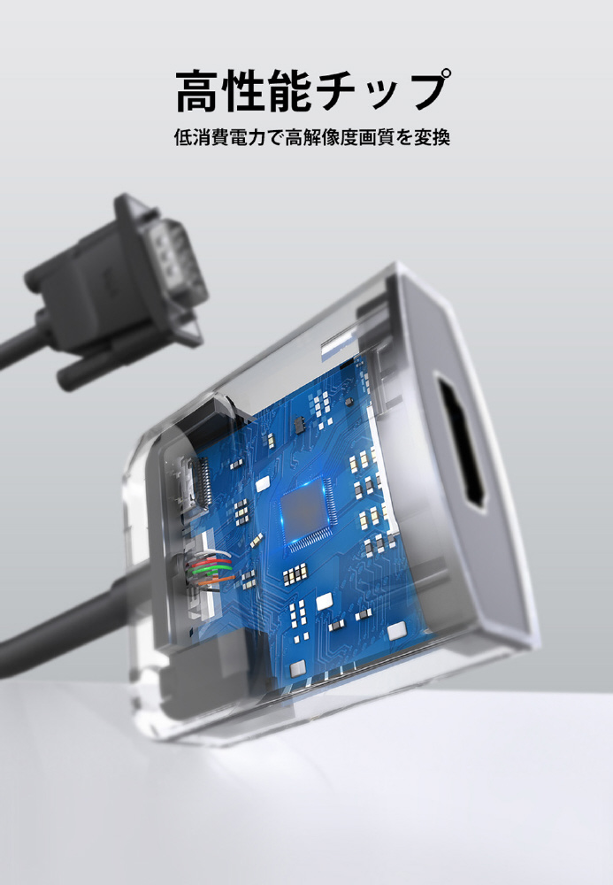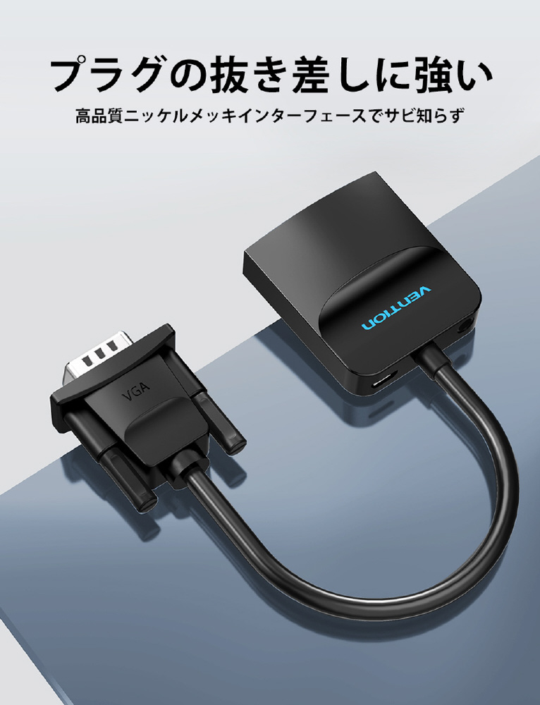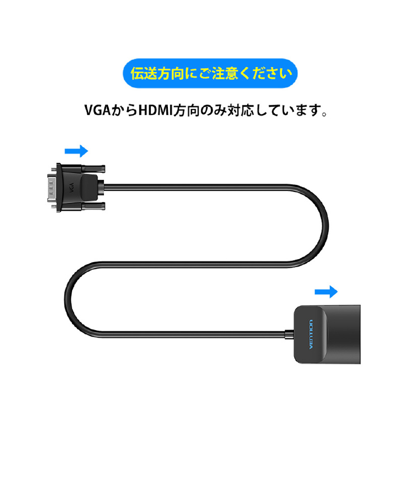 「VGA to HDMI 変換ケーブル 1方向タイプ イヤホンジャック付 給電仕様 0.15M Black」