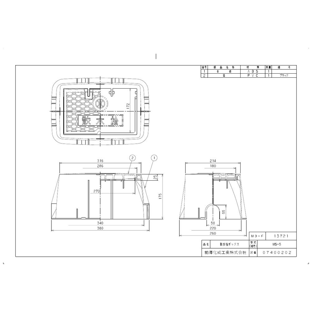 商品名 前澤 散水栓ボックス MSシリーズ MS-5