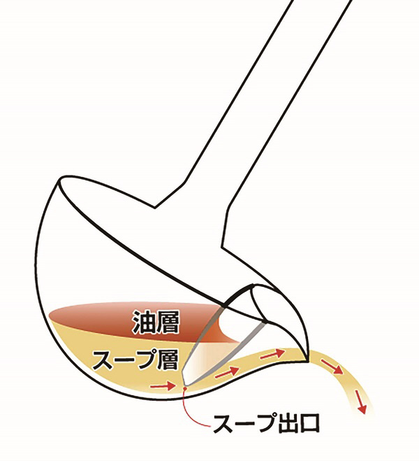 油だけ、アクだけ、スープだけを分けてすくえて便利! カレー・シチュー、煮物、豚の角煮作りにも便利! 食洗器OK。●サイズ(約):7.3×7×25cm ●重量(約):48g ●材質:ステンレス(SUS304)