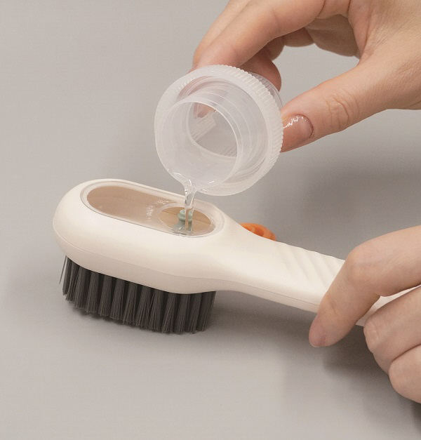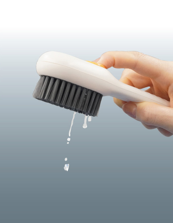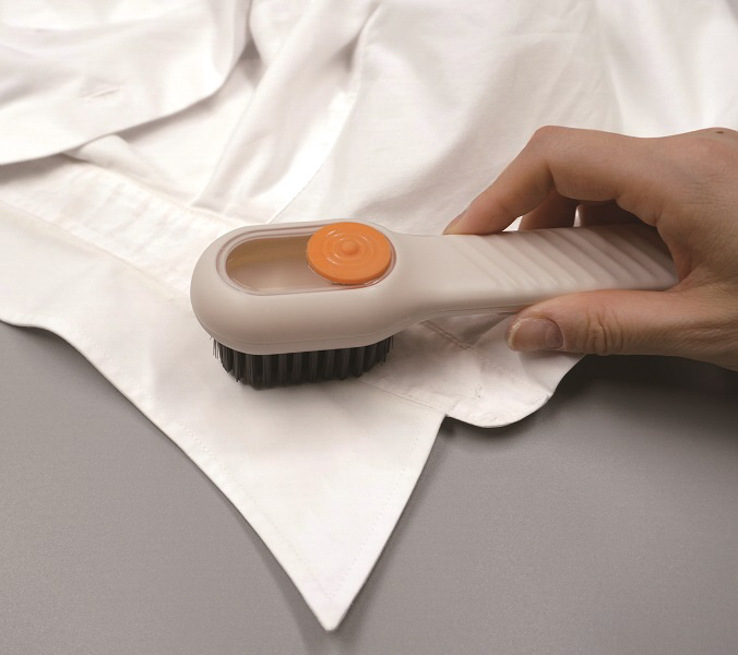 液体洗剤を入れておけるボックス付、ワンプッシュで洗剤が出てきて便利!しっかり洗える高密度なやわらかブラシで、エリ・そでについたしつこい汚れを落とします!フック掛けできて保管や乾燥に便利!●サイズ(約):4.5×4.5×17cm ●重量(約):35g ●材質:本体-ABS樹脂、ブラシ-ポリプロピレン、フタ・フックひも-TPR、バネ-ステンレス201 ●洗剤ボックス容量(約):30mL ※液体洗剤専用です。漂白剤は使用しないでください。※熱湯消毒はしないでください。