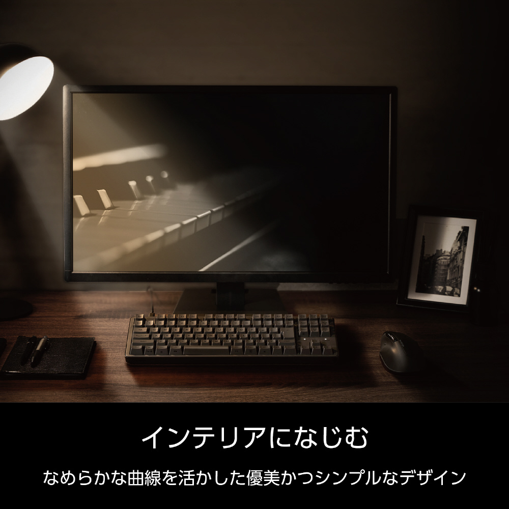 デスク周りのスペースを広く確保できるテンキーレスサイズです。