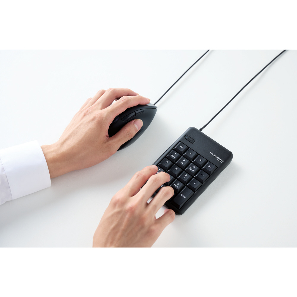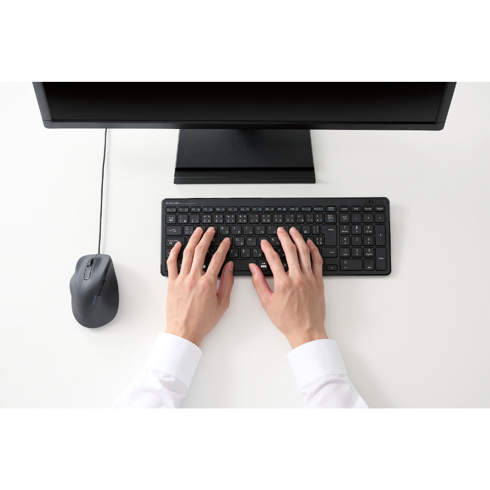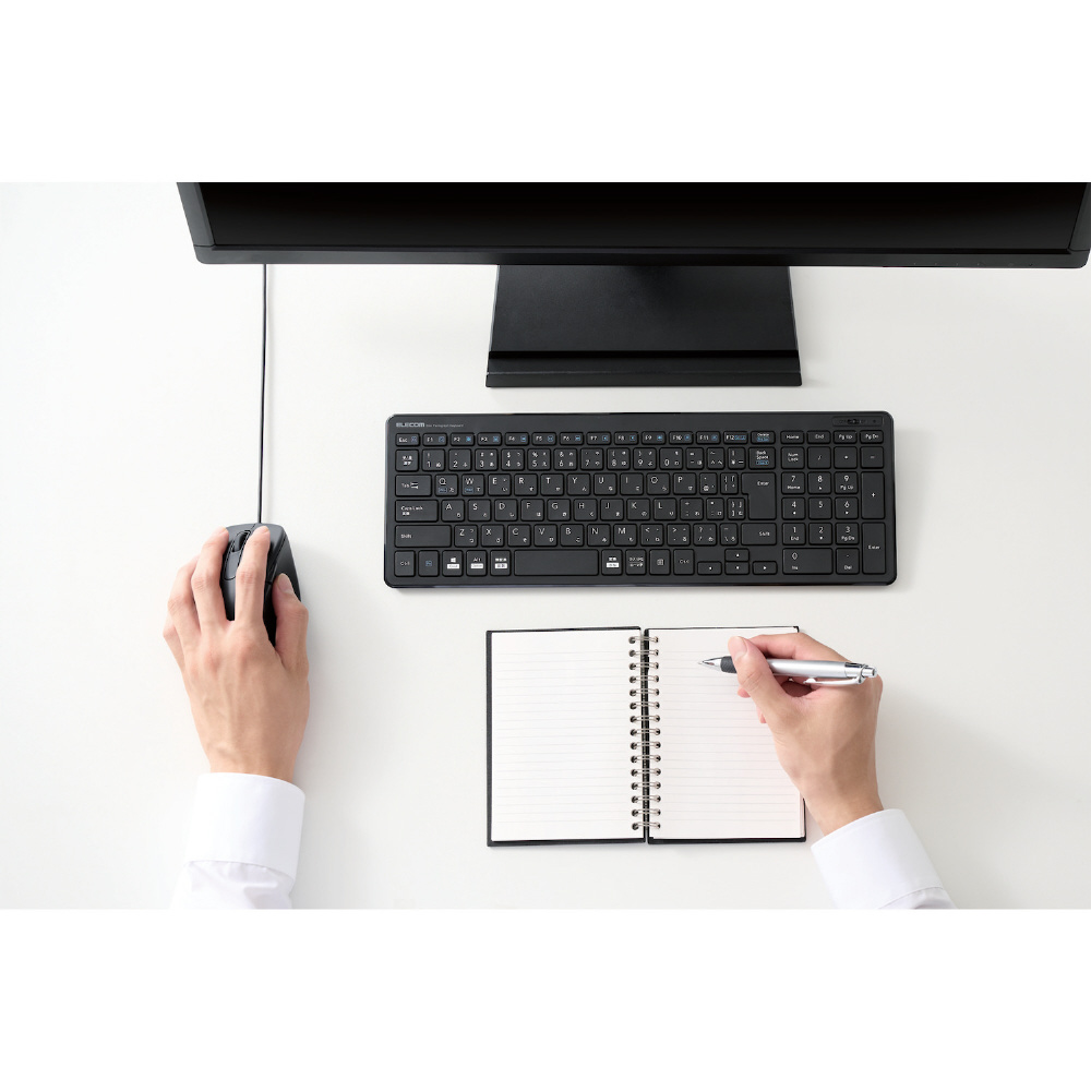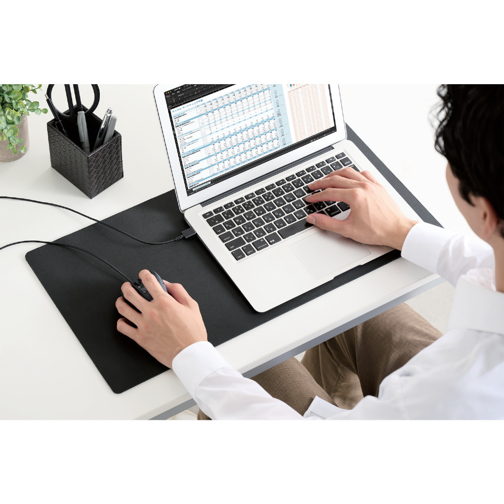電池交換が不要で、パソコンのUSBポートにケーブルを差すだけですぐに使える有線接続タイプです。
