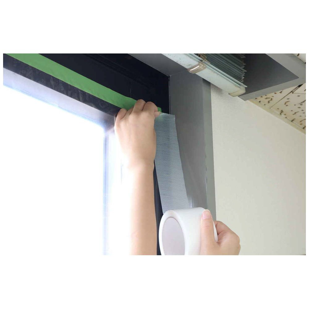 窓のサッシに手軽に付けられる飛散防止カバーシートです。