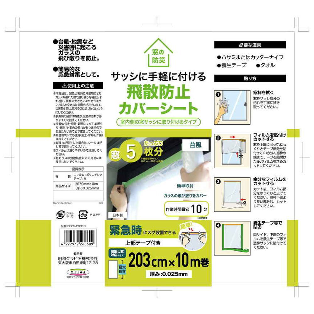 | 商品名 | 窓ガラス飛散防止カバー 明和グラビア |