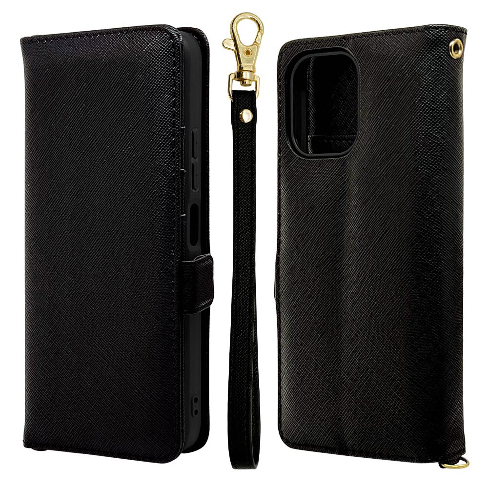 Redmi 12 5G ハンドストラップ付き手帳型ケース カード4枚 ブラック 7765R12BHSBK
