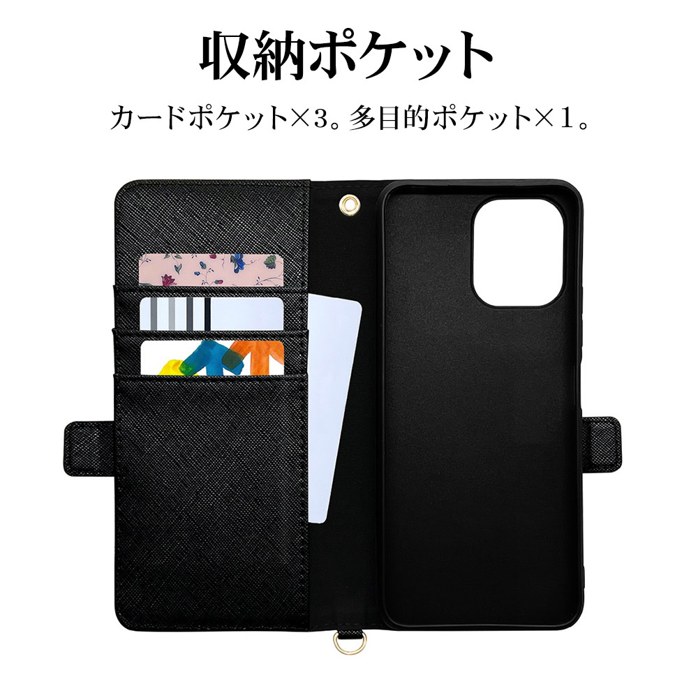 | 商品名 | Redmi 12 5G ハンドストラップ付き手帳型ケース カード4枚 ブラック 7765R12BHSBK |