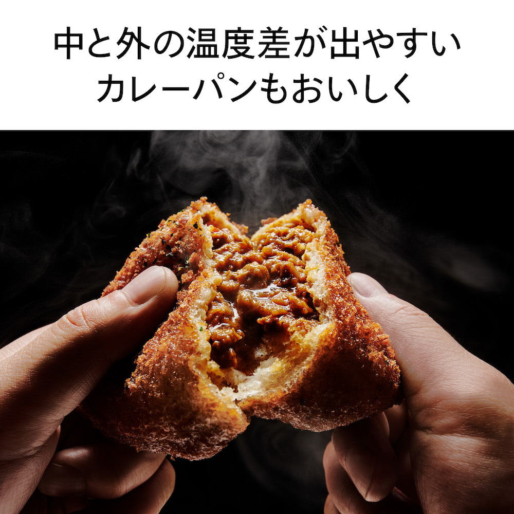 オートモードはそれぞれの冷凍パンにも対応。中と外の温度差が出やすいカレーパンも、表面は焦がさずサクサク、中心まで熱々に仕上がります。