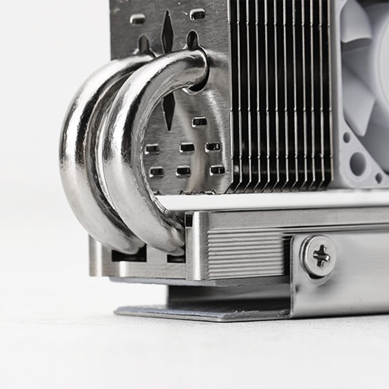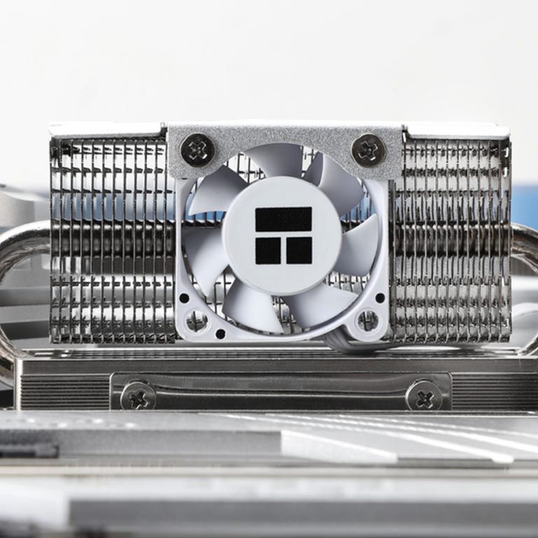 通常のプレート状のヒートシンクと違い、5mmヒートパイプを4本使用し、さらに大きなヒートシンクの中に冷却ファン搭載した、より強力にM.2 SSDを冷やしたい人向けのハイエンドなヒートシンクです。