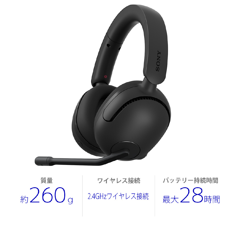 WH-G500BZ ゲーミングヘッドセット INZONE H5「モンスターハンターワイルズ」推奨音質 ブラック [ワイヤレス(USB)+有線 /両耳 /ヘッドバンドタイプ]