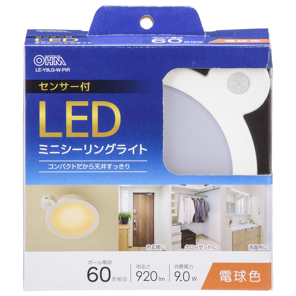 | 商品名 | LEDミニシーリングライトセンサー付き60形920ルーメン電球色 LE-Y9LG-W-PIR [電球色 /リモコン無 /電気工事不要] |