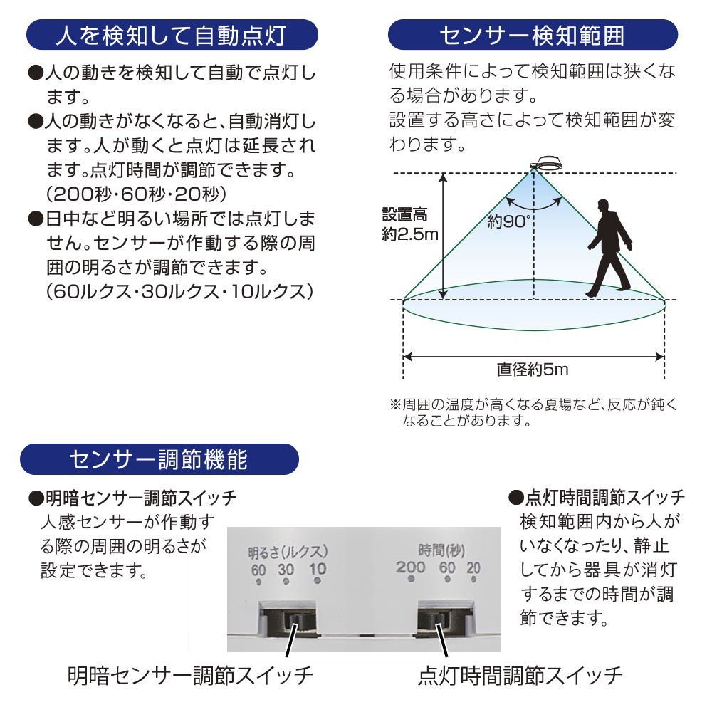 LEDミニシーリングライトセンサー付き60形960ルーメン昼光色 LE-Y9DG-W-PIR [昼光色 /リモコン無 /電気工事不要]