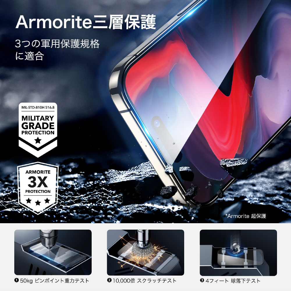マックスに強化されたArmoriteガラスは、50kgの耐衝撃性と超タフな耐傷性を備え、落下、衝撃、傷から画面を強力に保護します。