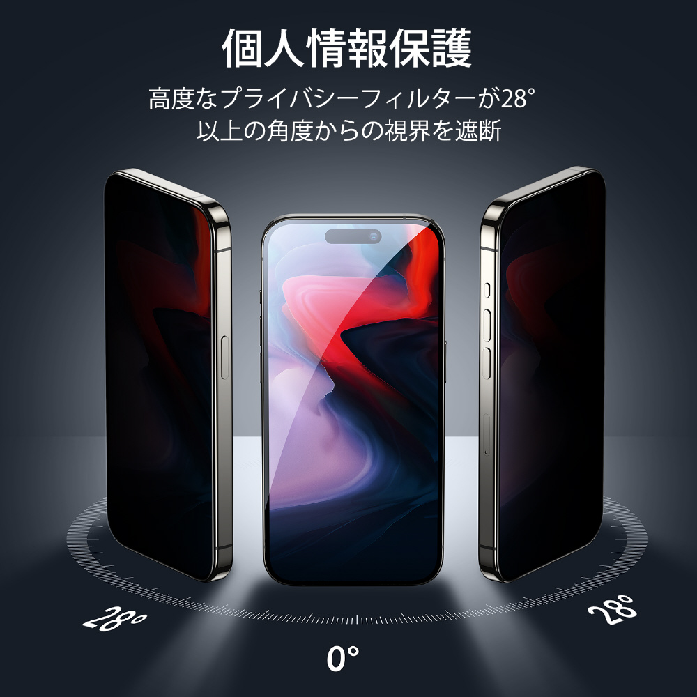 iPhone 15 Pro Max(6.7インチ)プライバシー保護強化ガラスフィルム