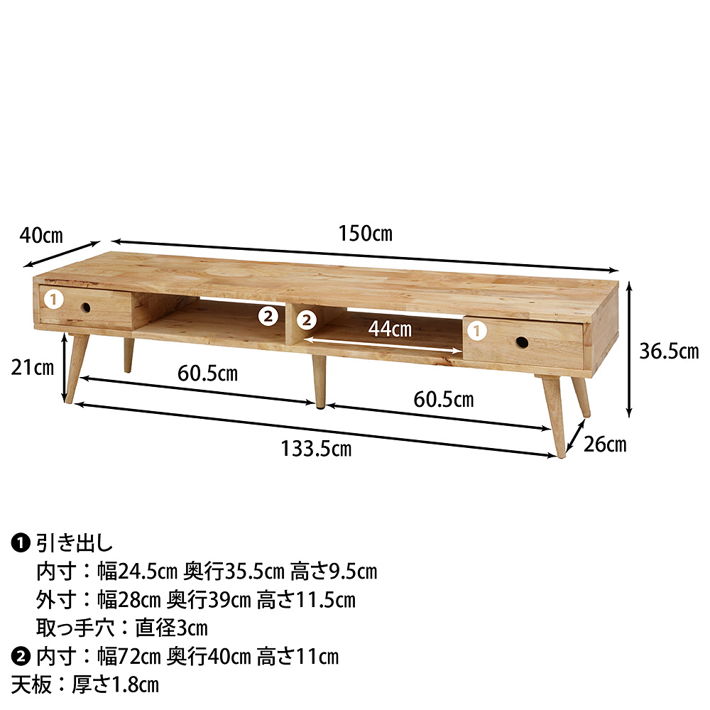 ■150cmのワイドサイズで、約50V型程度まで対応可能なTVボードです。