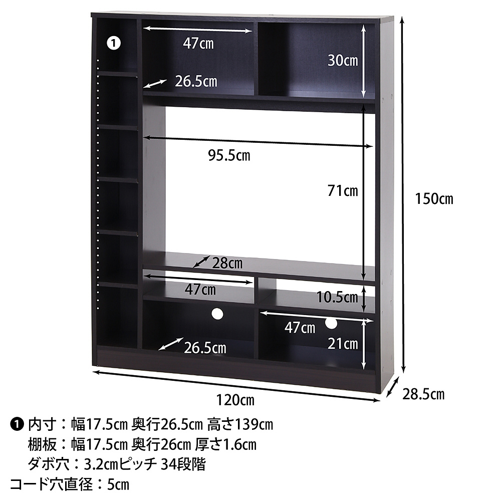 | 仕様2 | ・その他サイズ: 耐荷重(天板)30kg、適用TVサイズ32V型まで、コード穴直径50mm |