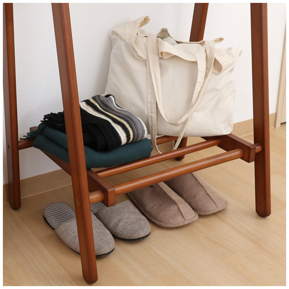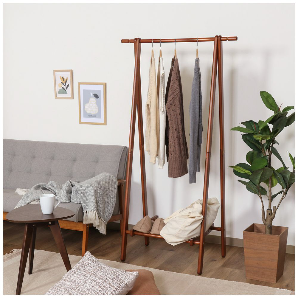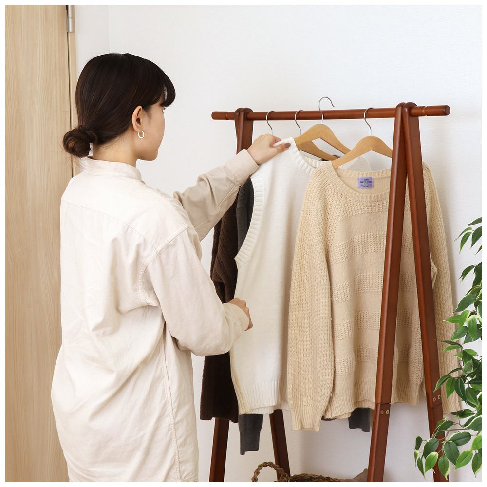 サッとかけるだけでスッキリ収納できる木製ハンガーラック。