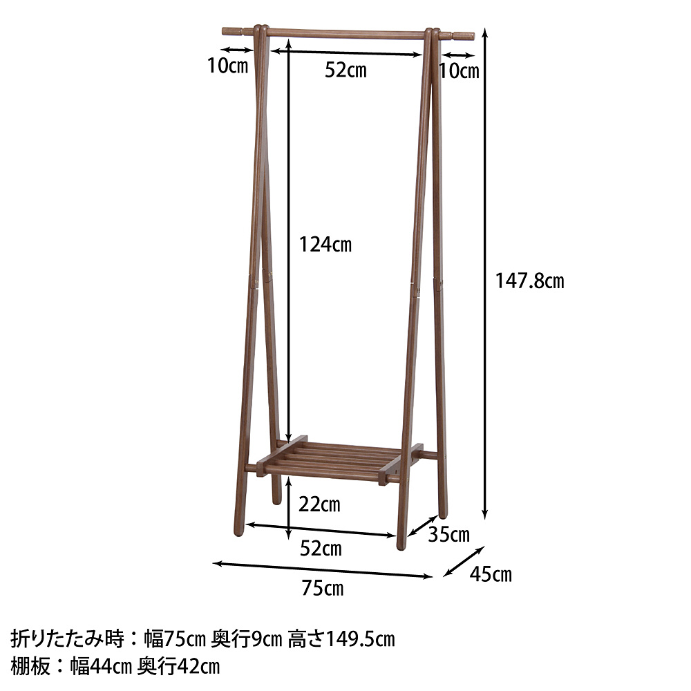 | 仕様2 | ・その他サイズ: 耐荷重(ハンガー)6kg、棚板サイズ440x420mm、折りたたみサイズ750x90x1495mm |