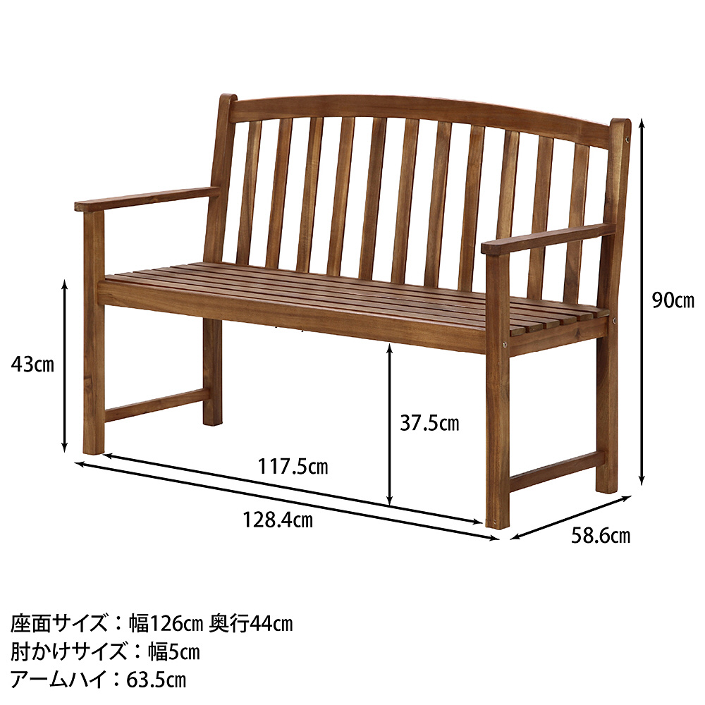 ■座面幅約126cmと大人が2人座るのにちょうどいいサイズ感。