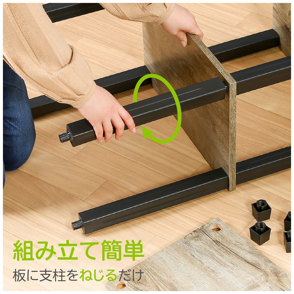 | 仕様3 | ・材質: 表面材: プリント紙化粧パーティクルボード、構造部材(支柱): ポリプロピレン |