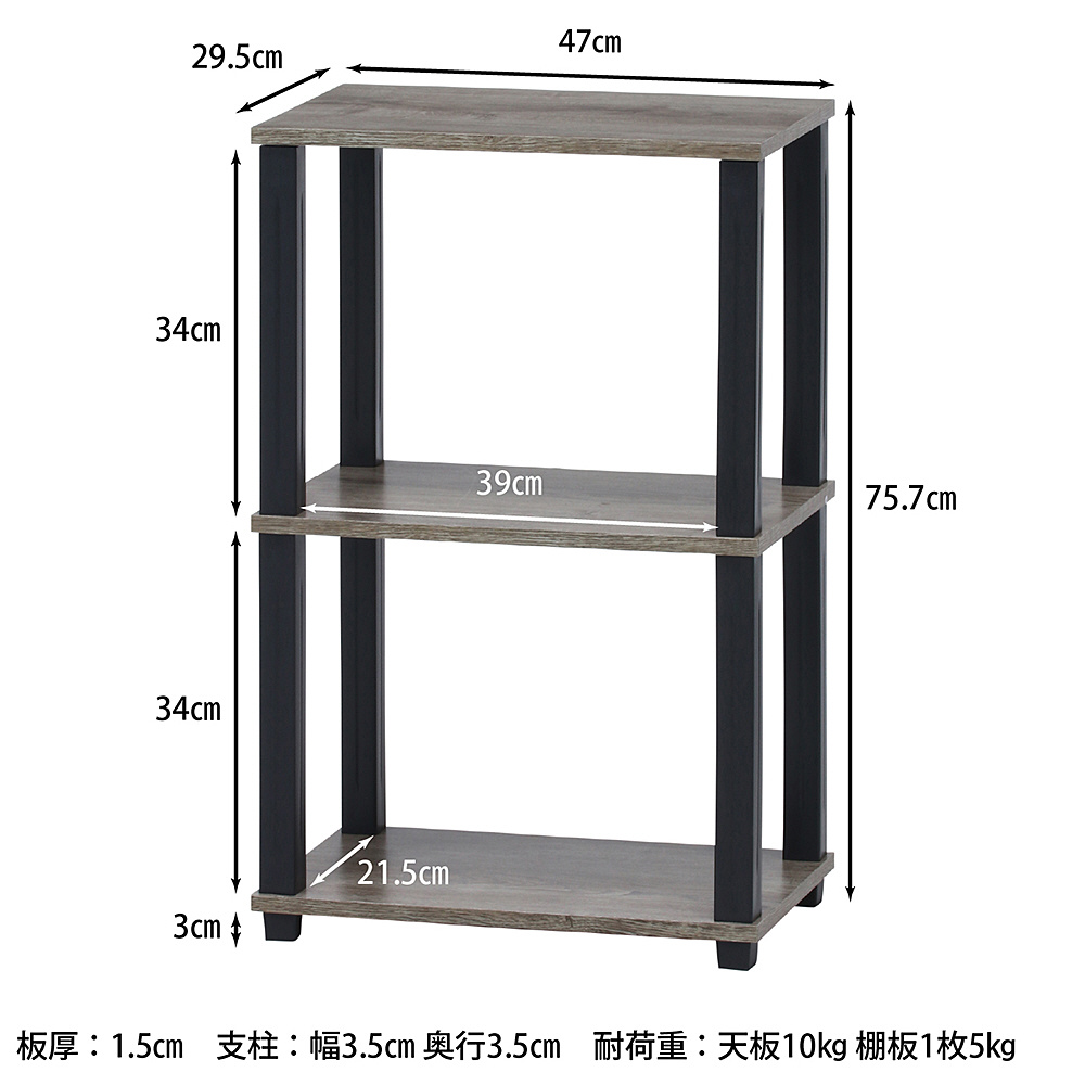 | 仕様2 | ・その他サイズ: 耐荷重(天板)10kg、耐荷重(棚板)5kg、板厚15mm |