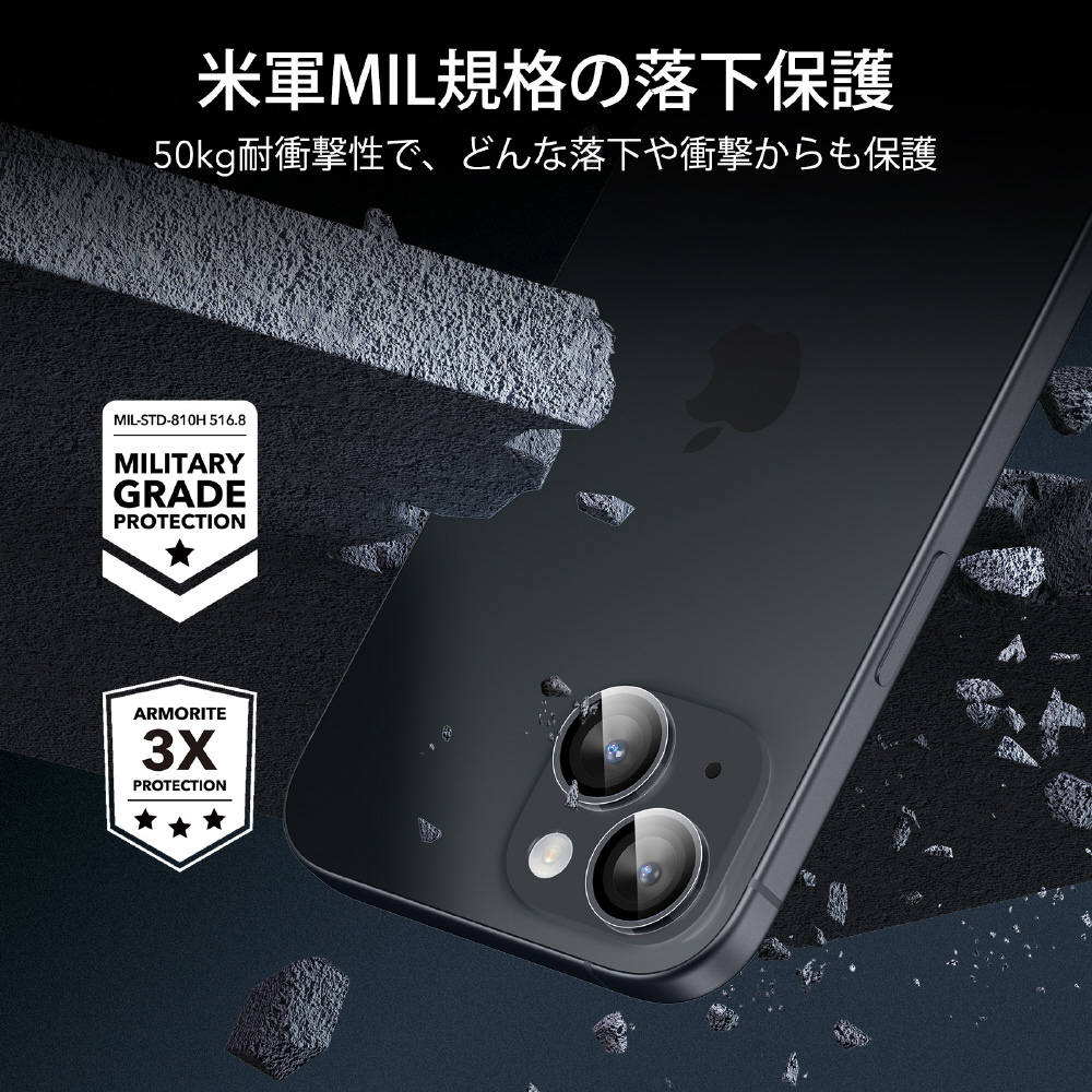 iPhone 15/15 Plus/14/14 Plus カメラレンズプロテクター ESR Black ArmoriteCameraLensProtectorsforiPhone15/15Plus 【864】