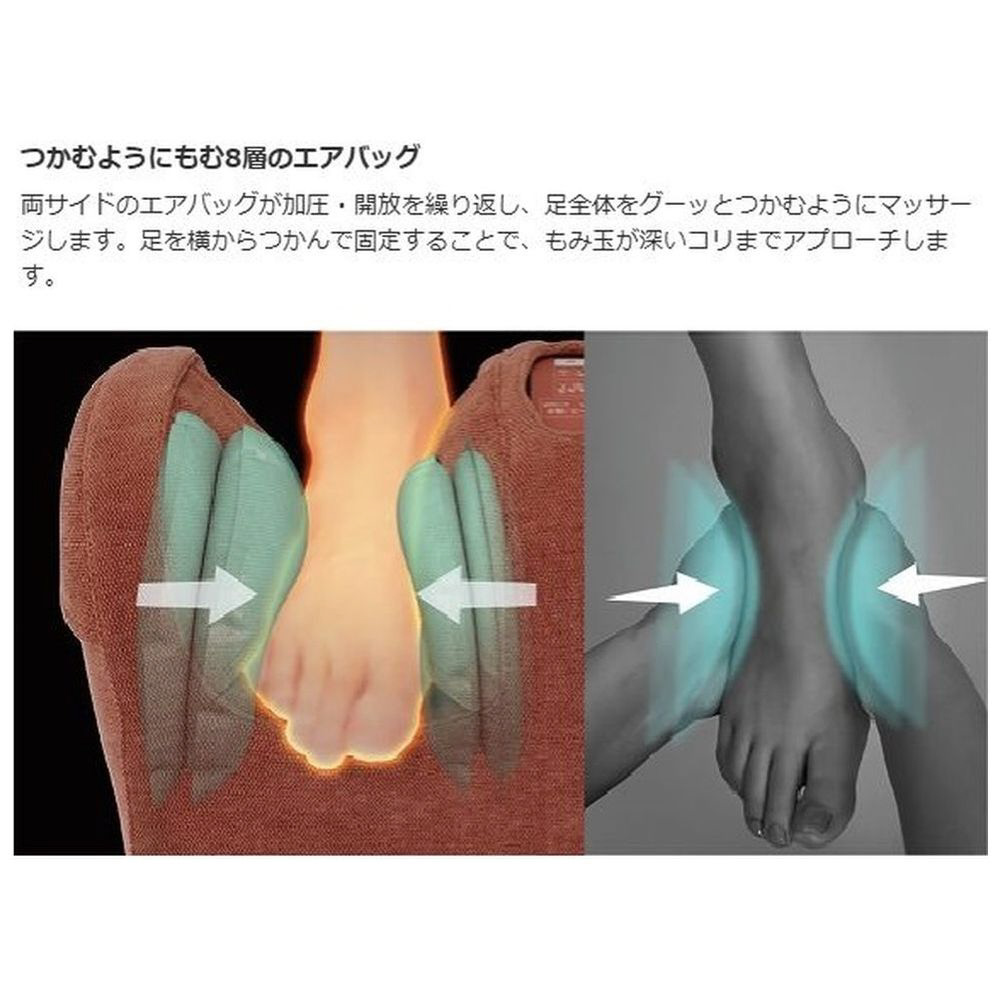 足の甲をエアバッグで押さえ込み、足裏にもみ玉が力強く刺激。