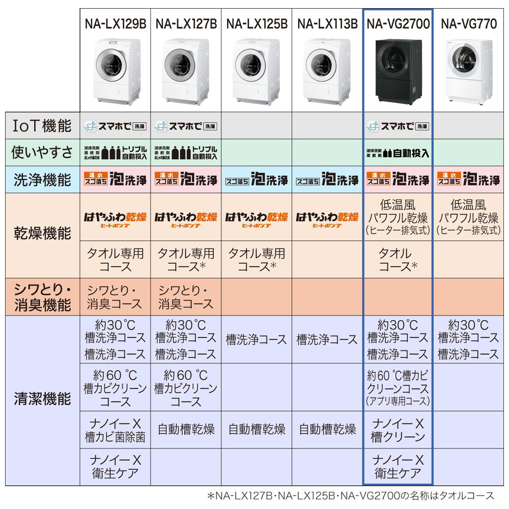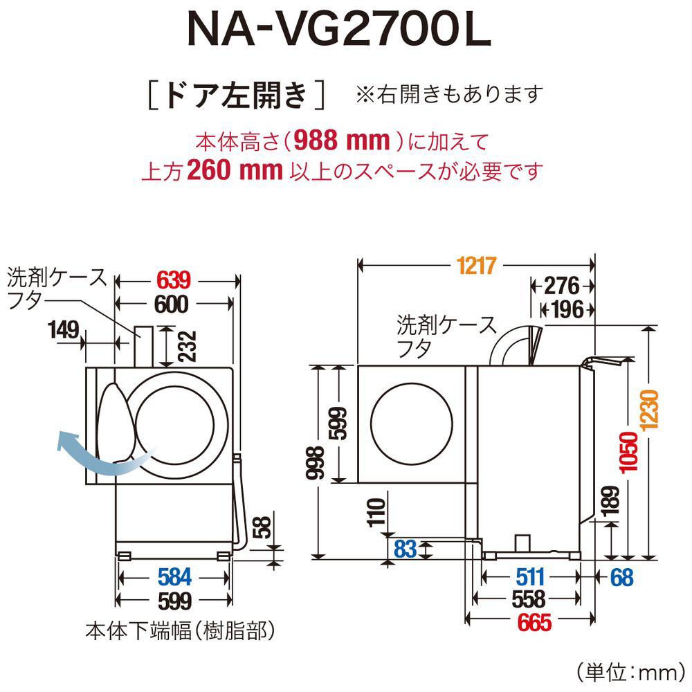 ドラム式洗濯乾燥機 Cuble(キューブル) フロストステンレス NA-VG2700L-S [洗濯10.0kg /乾燥5.0kg /ヒーター乾燥(排気タイプ) /左開き]【生産完了品】