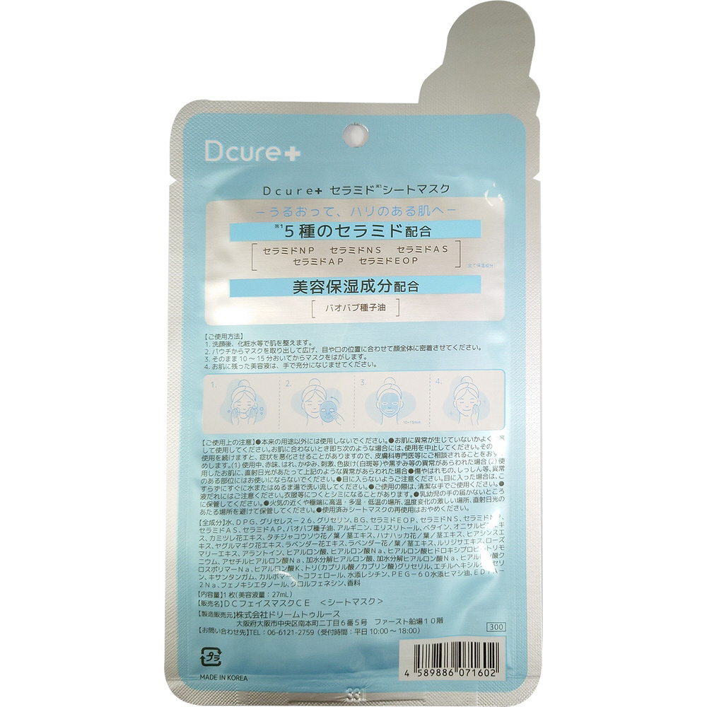 Dcure+(ディーキュア)フェイスマスク 1枚 セラミド