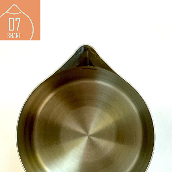 ■注ぎ口:シャープスパウトはラテアートの細いラインを描くのに適した形状