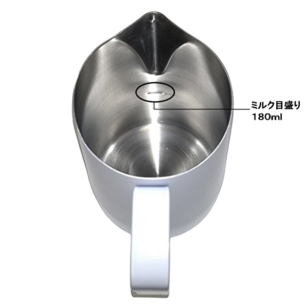 180mlミルク目盛り付き、泡立てやラテアートに最適なデザイン