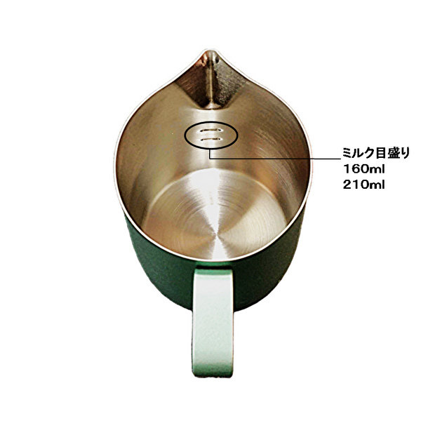 160、220mlミルク目盛り付き、泡立てやラテアートに最適