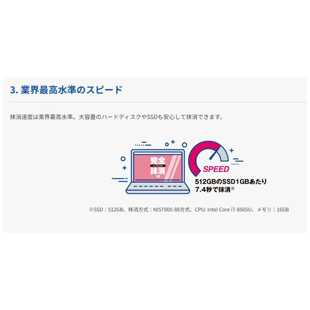 本製品はパソコンの基本システムに近い環境で動作するため、低スペックでも動作し、抹消速度がとても速く安定した抹消をおこなうことができます。