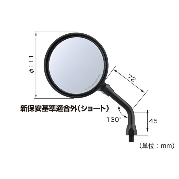 ハイビジミラー Z2 モンスターミラー 左右共通、片側1本入り(ブラック/ショート)M10正ネジ 新保安基準条件付適合 41561