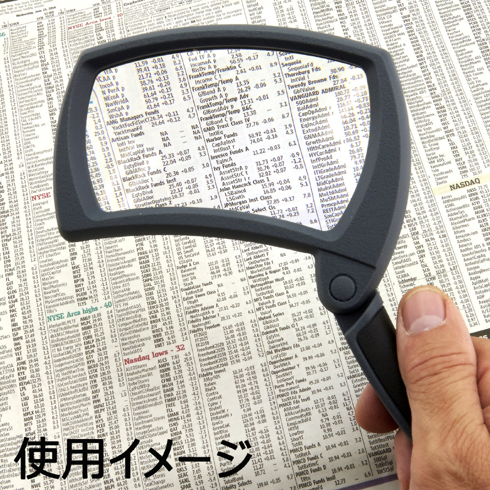 倍率2倍。3段階にロックできる折りたたみ式ルーペ。