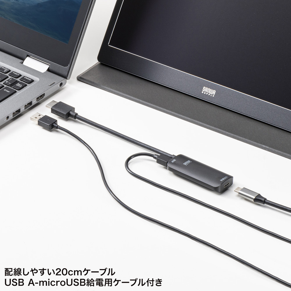 映像変換アダプタ [HDMI オス→メス USB-C+USB-Aオス(給電用)] 4K対応 AD-HD26TC [4K]