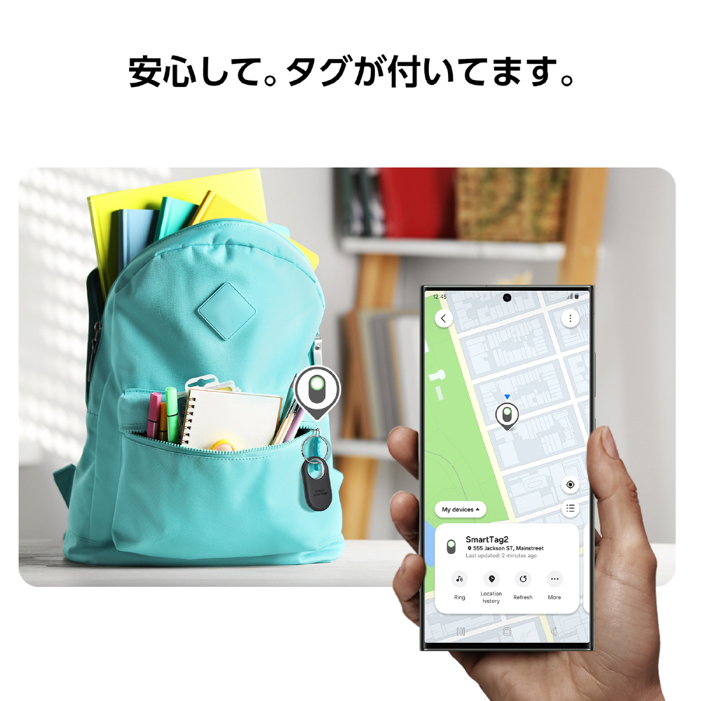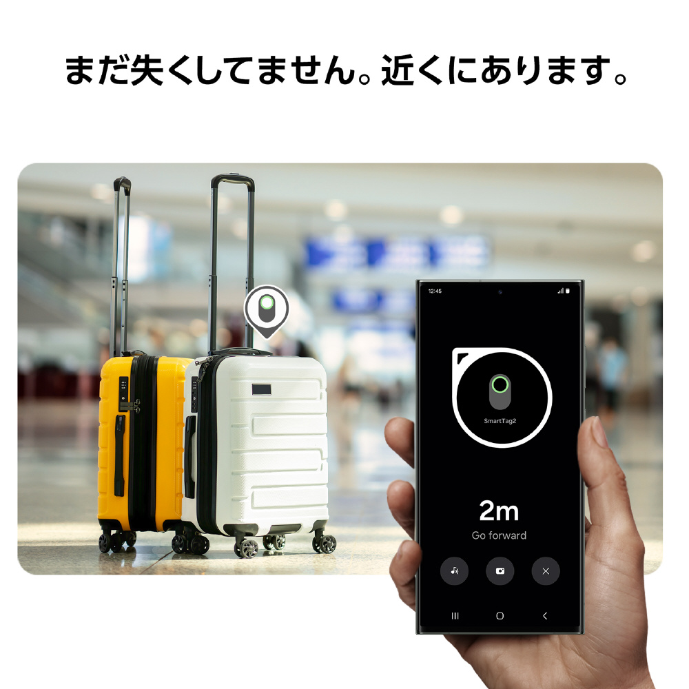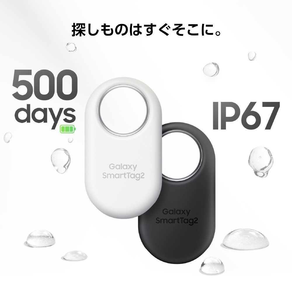 Galaxy SmartTag2はペットや物に取り付けることで、行方不明や紛失を軽減することができます。防水防塵に対応し、長い使用時間が可能なため、あらゆるシーンでもお使いいただけます。驚くほどのコンパクトサイズで持ち運びも簡単です。