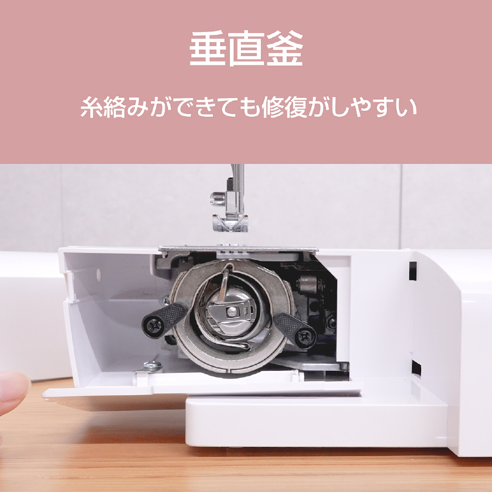 垂直釜で下糸の糸調子をお好みに調整でき糸締りが良く、縫い目をキレイに仕上げることができます