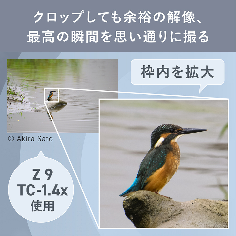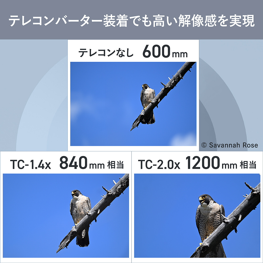 Z TELECONVERTER TC-1.4x/TC-2.0xを装着した場合、焦点距離を840mm、1200mmまで拡大可能