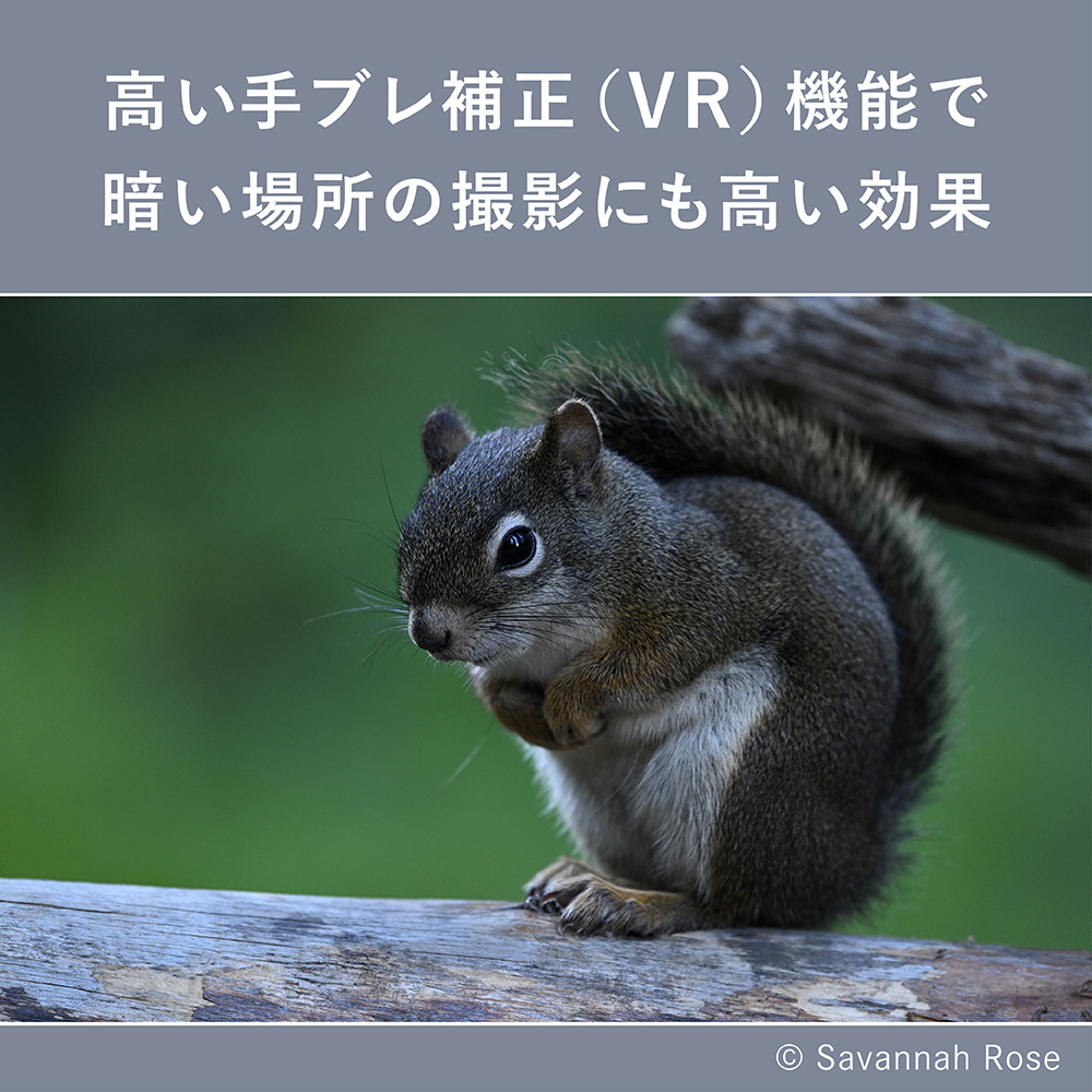 手持ち撮影を可能にする手ブレ補正効果5.5段(シンクロVR時6.0段。いずれもCIPA 規格準拠)のレンズシフト方式VR機構