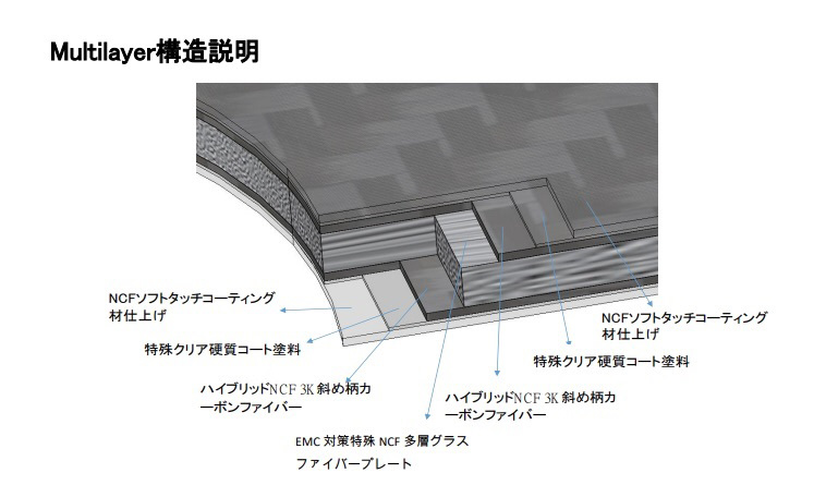 ●マルチマテリアルハイブリッド構造 静電気対策として特殊素材「NCF」を調合し、強力な制振効果に加え、EMC対策と静電効果が高まりました。