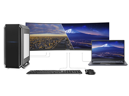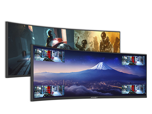 ■49インチの湾曲パネル(R3800)はDual WQHD解像度(5120x1440)を実現、27インチのWQHDモニターを2台横に並べた大きさ、解像度と同等となり、その圧倒的な水平解像度は、デスクワークモニターとして多くのウィンドウの同時表示が可能、圧倒的なレベルの生産性を実現します。