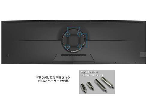 ■同梱のスペーサーを使用することで100x100のVESAマウントに対応、モニターアーム等への取り付けが可能です。